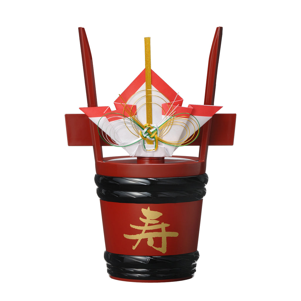 澤乃井のお酒を日本酒の伝統的な酒器である朱塗り調の角樽に入れました。慶びの日の贈答品としてどうぞ。